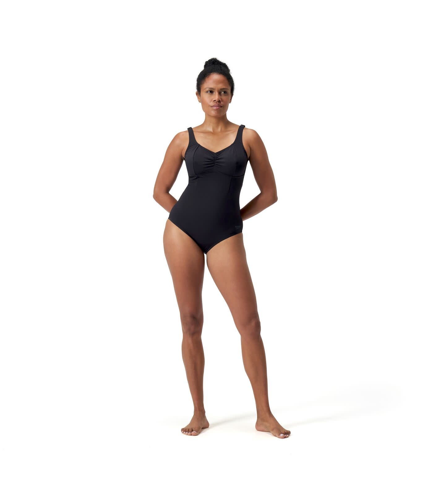 Verbetert, flatteert en voelt overal goed aan. Dit prachtige AquaNite-zwempak is tijdloos en elegant en maakt gebruik van een zacht ontwerp met V-halslijn om uw vorm te flatteren en een mooi silhouet te cre‘ren. De naden en verstelbare bandjes bieden een gemiddelde ondersteuning van de buste en zorgen voor een goede pasvorm tijdens de training, terwijl de all-over shaping stof ondersteuning biedt waar u het nodig hebt. Onze zachte SHAPE COMPREX-stof combineert het beste in shapewear-innovatie met de nieuwste badmode-technologie. Het is perfect voor uw regelmatige workout en bevat LYCRA¨ XTRA LIFEª, dat ultrachloorbestendig is en twee keer zo lang meegaat als standaard zwemkledingstoffen. SHAPE COMPREX is gedeeltelijk gemaakt van gerecycled afval. Het nylon garen in de SHAPE COMPREX stof is gemaakt van 100% pre-consumer afval, zoals afval uit fabrieken.